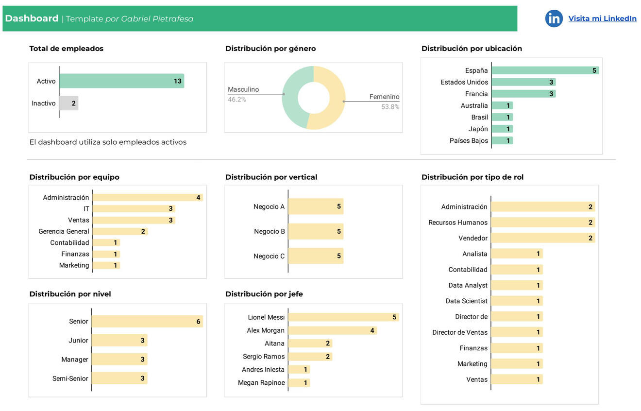 Dashboard de muestra para recursos humanos en general.